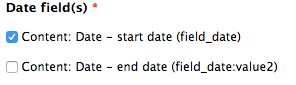 - Edit your date field in the view we created in the previous steps. Under MULTIPLE FIELD SETTINGS deselect Display all values in the same row